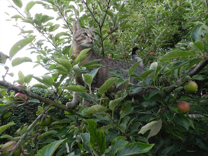 Fritz var oppe i vores æbletræ og vores pæretræ i dag, og i går var han oppe i et af vores andre træer (: