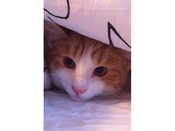 Konrad er rød/ hvid huskat, købt i Kattehjemmet Bæklund, i Hjørring, han er 6 mdr. Meget legesyg, snakkende, sjov kat.