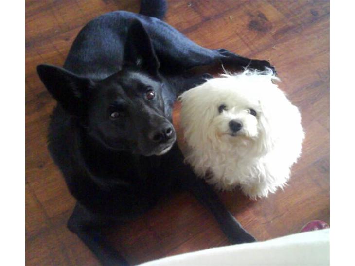 Det er mine dejlige hunde, eller rettere sagt er jeg kun plejemor for dem. Det er min storebrors, som jeg altid passer :-) Harald (den sorte) er en Dansk vikinge hund, og Fine (den lille hvide) er en Bolognese...