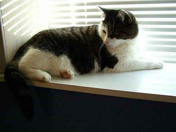 En dejlig kat som jeg selv har opflasket og passet siden hun var 14 dage gammel. Hvor hun blev fundet i en papkasse med ordene hvem vil have mig. Dem der fandt hende kunne ikke finde ud af at passe hende og boet et sted hvor de ikke måtte havde dyr. Jeg havde længe ønsket mig en kat så jeg var ikke i tvivl da jeg så hende. Ja nu har jeg haft hende i 7 år og hun stortrives. Hun elsker at være uden for det meste af dagen og ligge og sove hos min far om natten. For et år siden blev hun kørt ned og blev helt ødelagt af i maven. Hun stak af da hun blev kørt ned og vi fandt hende først et døgn efter, hun var gudskelov stadig i live og hun kom til dyrlægen. De sagde at de aldrig havde set en kat som var overlevet med sådan nogle store skader. Hun er en kat som elsker livet højt, og som kun fortjener det bedste i hele verden. Hun er højt elsket her:)