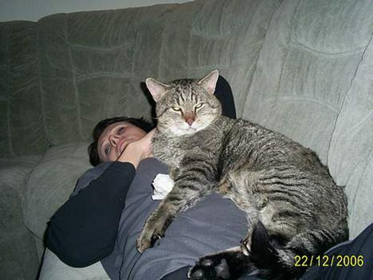 Han er en dejlig grå kat med sorte striber. og en rigtig stort hoved. og er en lille tyktrold :).. han er et rigtig doven dyr. men han kan også være rigtig aktiv. men han er vores søøde kat. ELSKER ham rigtig meget :)... han vil gerne have man viser ham maden . han har lige været væk over en månden :(.. han haveed det rigtig skidt . han haved lige fået medicin. men så så vi ham ikk over en månden. men så her i fredags kom han ind af vnduet kl 5.00 :).. han er helt frisk. det medicin har hjulpet.. så vi er rigtig glade.. men han er en MEGER søøød kat. og MADGLAD så det siger spar 2!!!..