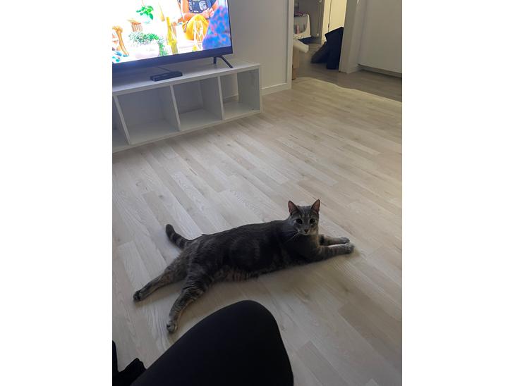 Hun er total afslappet. Hun finder sig i alt. Elsker gæster. Hun opfører sig lidt som en hund