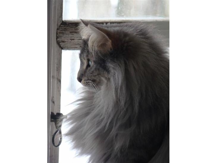 hun er sølv med brun næse og et sølv skær ned af rygen hun er født den 6. maj 2006. hun er rigtig fin.