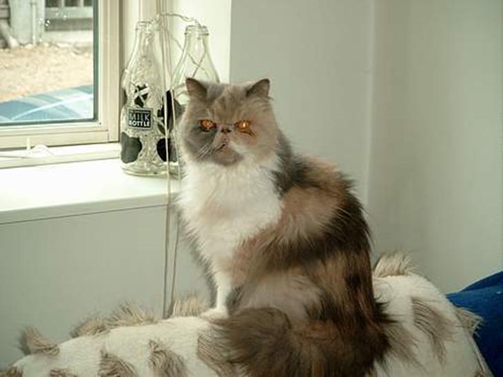 Bicolour Blå tortie-hvid. Rigtig lækker og fyldig pels med stor busket hale. Hvis bryst, mave og sokker.