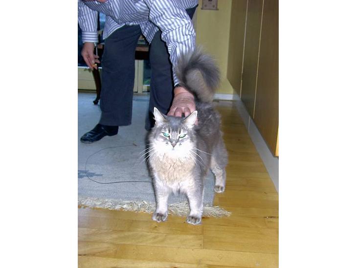 Hun er god til at sove og kæle, og så vækker hun en om morgenen ved at ælte en på brystet, til man vågner og står op for at give hende mad.....