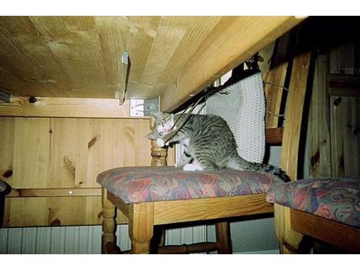 Bølle er efter vore tidligere kat. Men hun forsvandt pludselig. Han har været hos mig siden han blev født. Han elsker at sove, jagte damer og spise.