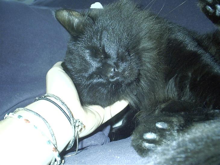 nej. stille og rolig han er. han ligger tit på den faste soveplads i sofaen og slapper af. meen han er da også med på en leg i ny og næ.