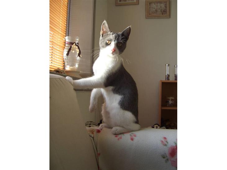 Smylie er en dejlig han kat på snat 9 måneder. han er kastereret . han er skøn han kat. ikke så balademager som hans søster. men kan finde på mange numre,, han kommer altid når jeg kommer hjem fra arbejde. så skulle man tro , det var mad der stod højest på hans ønskeseddel. men nej . det er at blive kælet med ,, han er godt nok mad glad ,, og vejer knap 4.5 kg. han er en rigtig kælegris,, han kommer altid ind og putter sammen med mig i min seng.. han skal helst ligge så tæt han kan ... hans søster , smilla. hun er nået mere selvstændig.. hun er så også stor styk til at lave ulykker. smylie ar knap så glad for fremmede mennesker , når jeg eks får gæster han aldrig har mødt ,, så går der timer før han kommer til dem.. de skal bare ignorere ham .. til sidst kommer han af sig selv,, da jeg fik ham og hans søster , kunne jeg ikke komme til ham i 2-3 dage , han var ikke direkte bange, kun lige den første time .. derefter ignorede jeg ham bare . lod ham bare være og lod ham følge mig i de dage . til sidst kom han . der imod hans søster smilla sov ved mig den første nat. det gjorde han også lidt , men jeg måtte ikke røre ham . jeg lod ham bare være . ved ikke hvad der er med ham der. med fremmede. men han er aligevel en skøn kat.