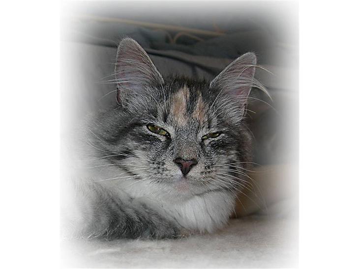 Caliza ( Liza ) er en Dejlig lang feminin sølv tortie hunkat, med lige profil, store øre, godt NFO look, god pelskvalitet, lang busket hale, super godt temp. og er altid glad... og så er hun fars missepige *GG*