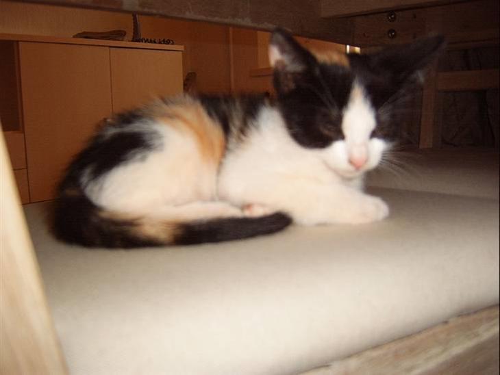 Lillefis er fra et kuld på 6 killinger. Vi valgte at beholde hende da hun lignede sin mor så utrolig meget. Lige fra hun var helt lille har der været gang i hende og hun følger sin mor uanset hvor hun går hen. Hun er meget modig og driller rigtig gerne de andre katte udenfor. Hun tager sig ikke rigtig af at hun får lidt klø engang i mellem. Hun er hele tiden der hvor der sker noget og elsker at fange musen på vores computer :)