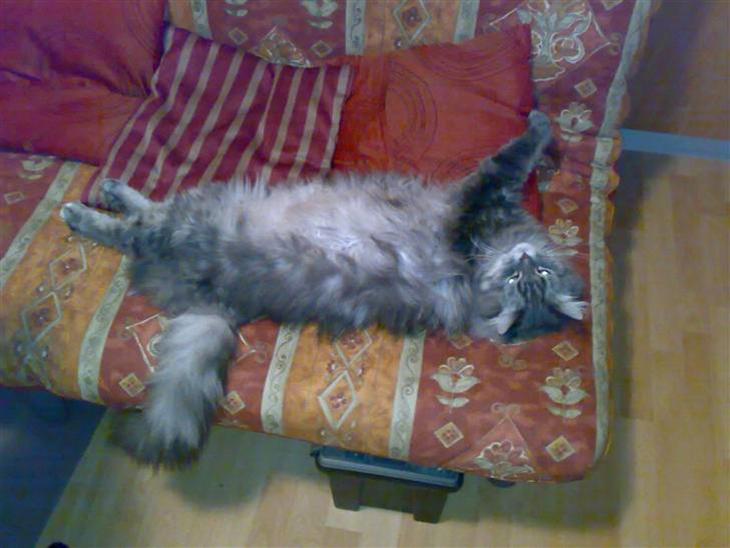 Rolig, men elsker at lege. Han er en meget venlig kat. Han elsker at drille Bine.