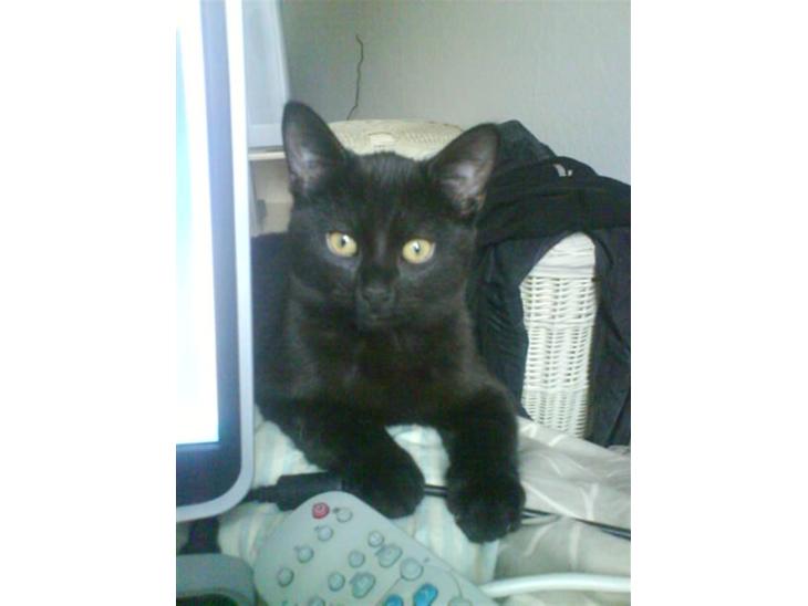 Hun er helt kulsort, med lysebrune øjne og meget langhåret..... Hendes mor er 3/4 dele skovkat............
