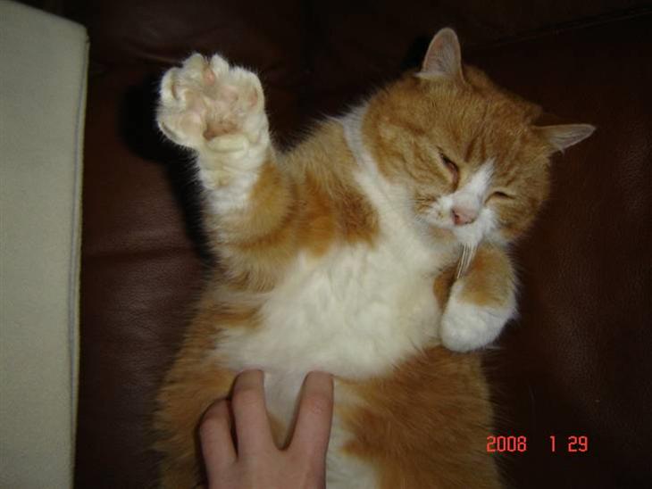 Du kan vende hende på hovedet mens du kæler hende på maven og hun nyder det bare =D
