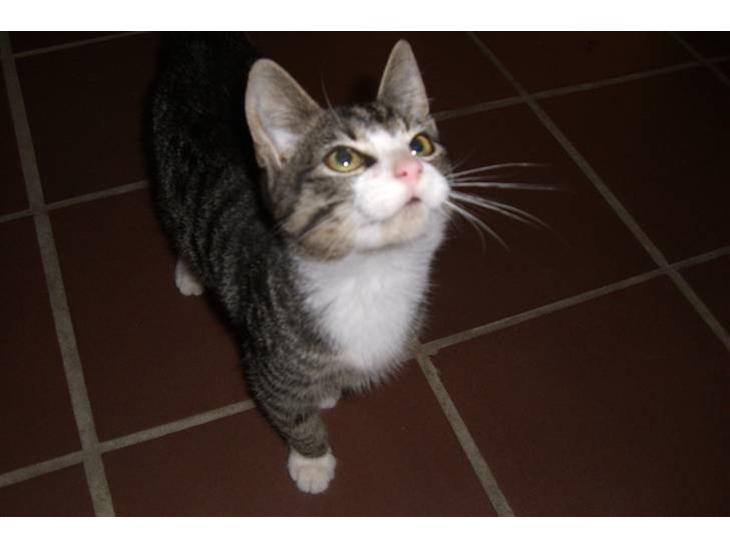 Sød, og meget kælen. Elsker at blive løftet, og leget med. Meget doven, elsker at flade ud på sofaen med hundene.