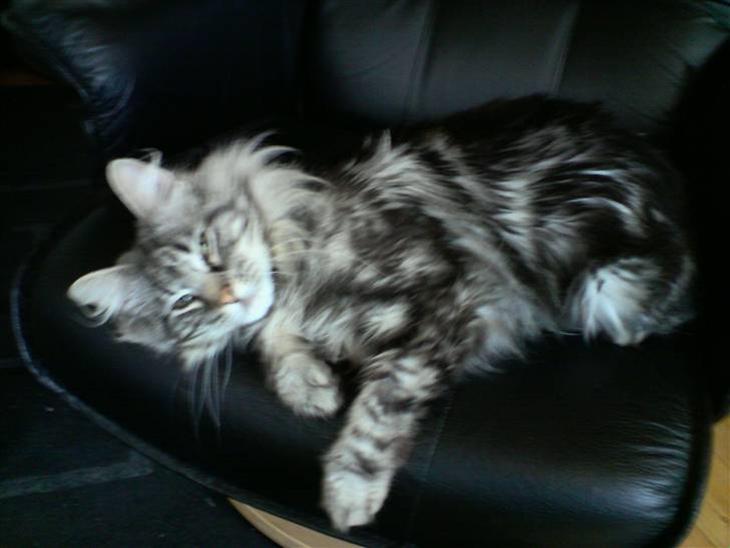 .: Ikaros er alle katte elskeres drøm ! - hans farve hedder black, silver tabby. han er utrolig kælen, vi kan overhovedet ikke være for ham. han sover i sengen ved os hver nat.. han er ligeså doven, som dagen er lang og han er dov ikke kastereret !! ;) . han finder sig i alt & han laver ikke ballade, når han er alene hjemme. Ikaros er inde kat, så han tilbringer der meste af hans dag med at spise, grave i katte kakken og se fjernsyn - JA., han ser fjernsyn sammen med ozz , han sidder faktisk helt oppe i skærmen , hvis han kan komme til det . han elsker at blive børstet men HADER at komme i bad - men kan dog godt finde på at lege med vand, fra en balje.