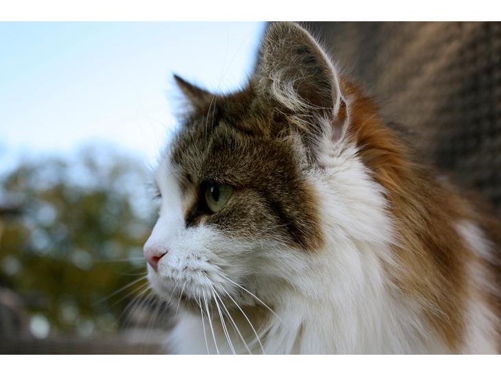 Jeg er ovenud lykkelig for, at vi besluttede os for at finde en kat på Roskilde Dyreinternat i 2008. Fie er noget af det bedste, der er sket for mig, og jeg kan ikke forstille mig en hverdag uden hende. Hun har knyttet sig så utroligt meget til mig, og sover hos mig hver nat. Forskellen på hende fra da vi fik hende til nu er så stor, og jeg er så glad for hende, at vi har kunne givet hende et så trygt hjem som nu. Da vi købte hende var hun en stor hårbolle af knuder og hun så SÅ usoigneret ud, da hun var blevet fundet i en skov. Hun var meget sky, og reagerede på de mindste lyde. I dag er hun utroligt kælen, også over for nye mennesker, og hun stoler utroligt meget på mennesker. Hun er ved at være en ældre dame, men det kan man ikke mærke på hendes adfærd, andet end at hun sover meget i løbet af en dag. ;-)