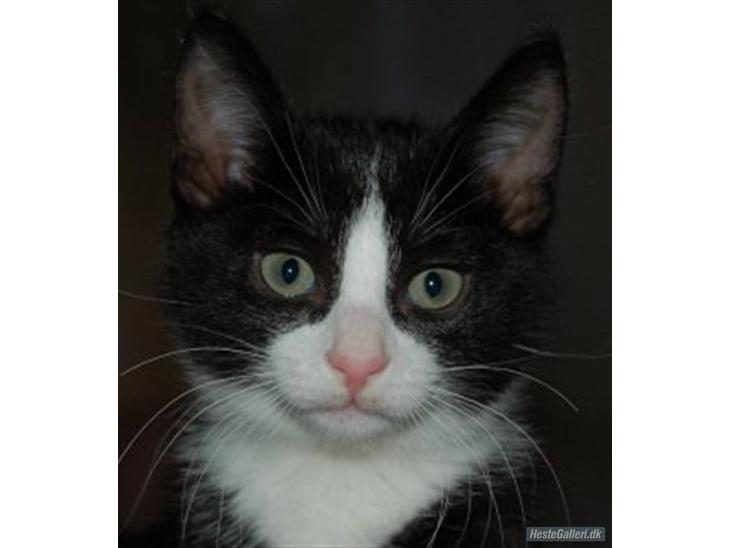miv er sort, hvid med en hvid stribe hele vejen ned af maven.