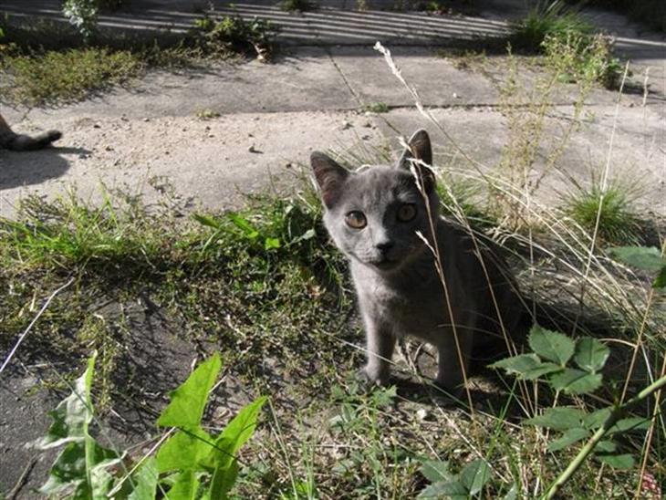 Han er helt grå med de sødeste store grøn/gule øjne, som får dig til at smelte. Ham kan man ikke være sur på.