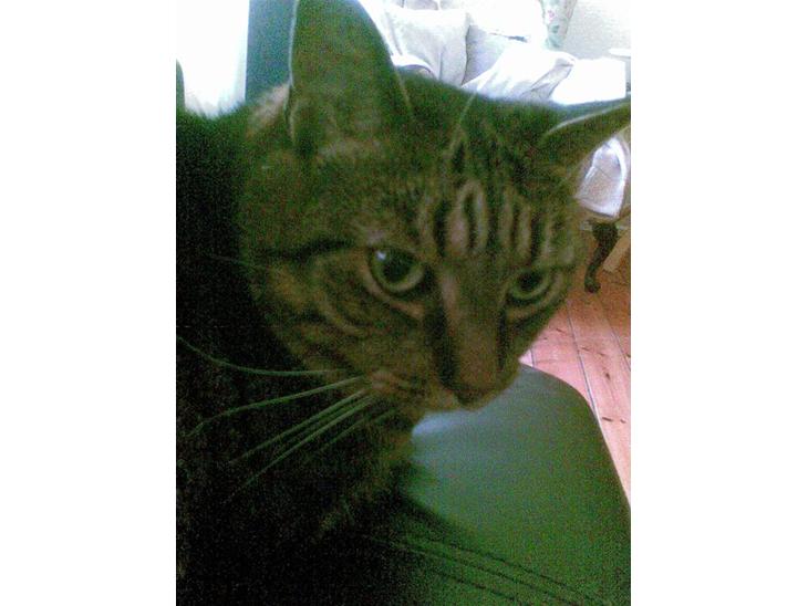 typisk EU stribet tabby. med lidt kort hale, små poter, bredt hovede, korte øre og 5,8 kg. uden at være for rund. dyrelægen sige det er en fin hun.