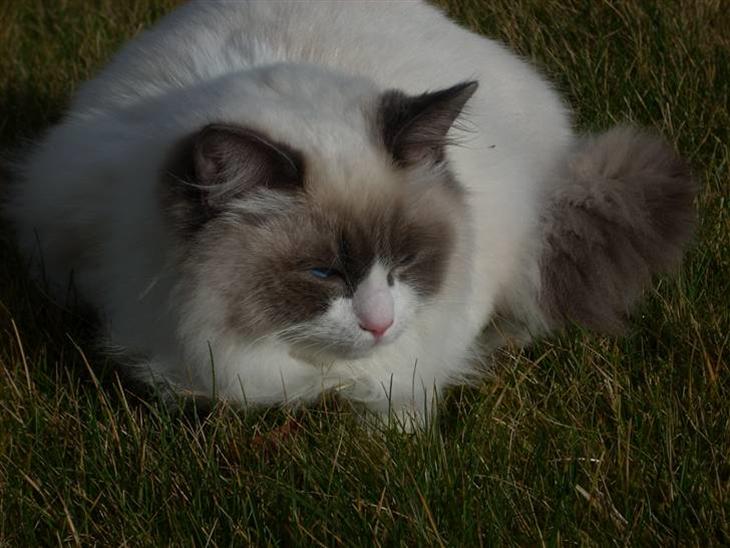 Meget kærlig og ragdollagtig. Kommer nogen af de andre katte indenfor rækkevidde er de sikker på at få vasket øre eller puttet med.