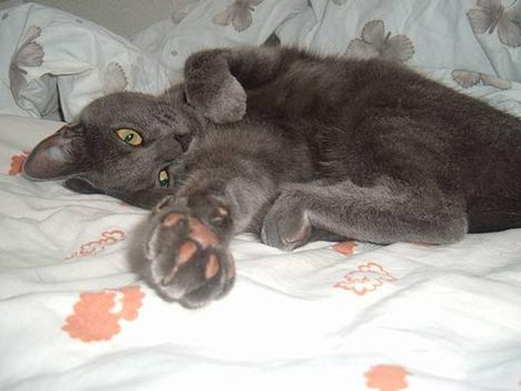 jeg er en lille grå hun-mis... jeg elsker at trave rundt på mine forældre og helst helt oppe i hovedet på dem... jeg elsker at gnide snude. og så er jeg bare en rigtig putte nusse mis.