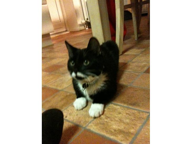 Findus er en smuk sort hankat med hvide aftegn. Han er den sødeste kat der findes, men kan også være en satan ;-) Han er blevet kaldt "fløde-skæg" siden han blev født, fordi han har hvidt overskæg :-)