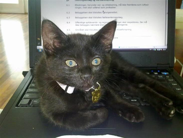 Min dejilge sorte guldklump der valgte at føde 4 fantastiske små killinger for 4½ siden. Jeg har aldrig haft en kat med så godt et temperament og sind - der er intet ondt skabt i hende og hvis man ville kunne man svinge hende rundt i halen og hun ville bare miave lidt og så gå når man satte hende ned.