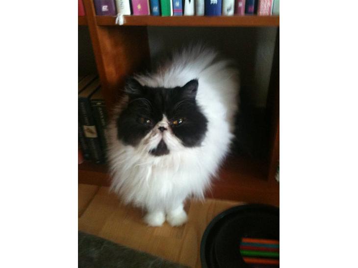 Næææ hvor er du fin Emil, lige omvendte farver af hvad min perser havde...han havde sort pels og hvid hage...skægt.