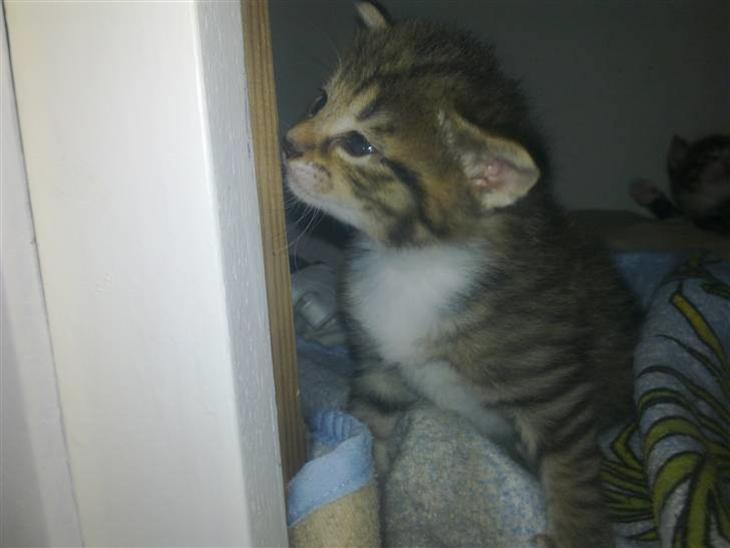 Hun er født den 13 maj 2010, hun er fra et kuld på 4 katte. Blandning af norsk skovkat og huskat.. Hun er stribet og plette, med hvide poter, og hvid på brystet. Hun har nogen gyldne farver og lidt grå i halen..