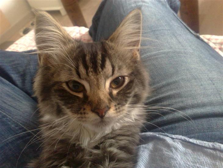 Vild og total legesyg, men også en rigtig putte-kat når den er træt - så skal der ligges i ske med den store skovkat Conrad, som er blevet en slags papfar for Elvis.