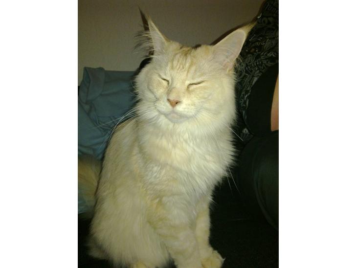 Den 10 februar købte jeg en rød silver blotched tabby Maine Coon. Da den tidligere ejer ikke følte at han rigtig ville være hos dem mere, men han er faldet super godt ind hos min familie og min datter er rigtig glad for ham.