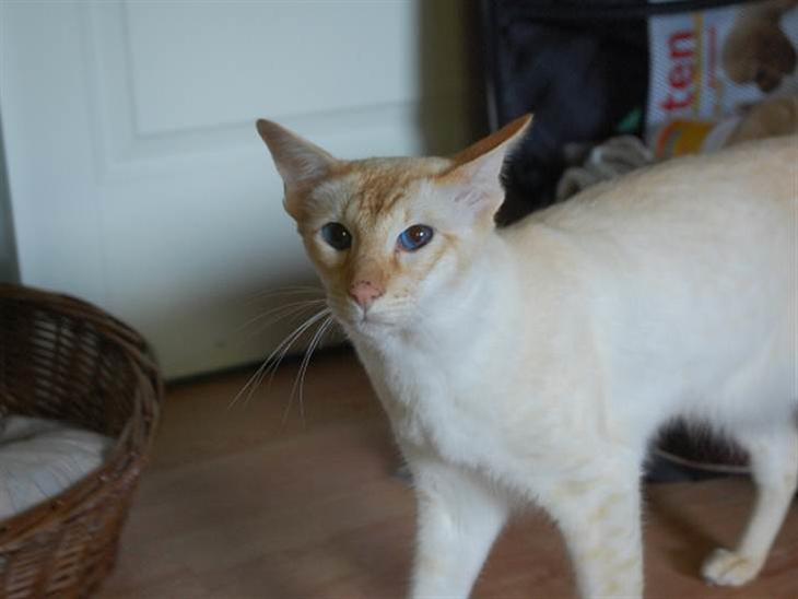 Adopteret som voksen ungkat, da tidligere ejer ikke kunne have ham, da han er "racist", dvs. han ikke kan sammen med katte uden maske.