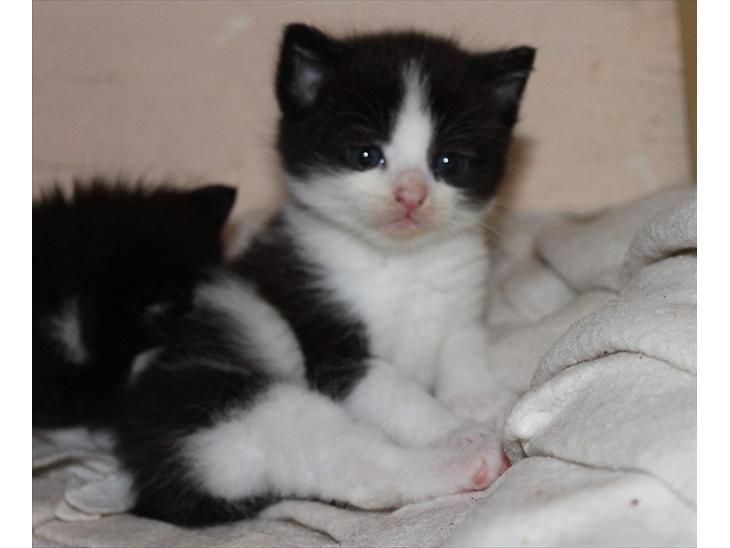 vi har lige købt en gård og oppe på vores hø loft fandt jeg 4 dejlige killinger og deriblandt var "lille" Peswee.