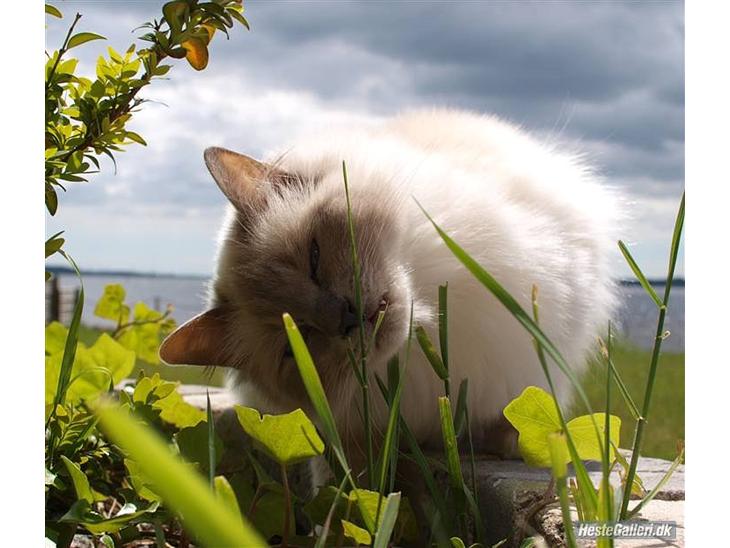 En lilla hellig birme, freja er vores dejlige gamle kat, vi fik da jeg var 3 år gammel, hun er en virkelig klog kat, der altid kommer når man kalder, og altid går med i seng og sidder om aftnen og venter på vi går i sang, hun har haft 5 kuld kilinger og hun er en fantastisk mor og altid har klaret det helt fint selv (: