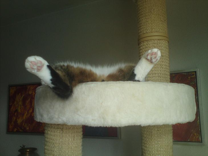 Jeg havde købt en sele til ham så han kunne komme ned på græsset i baggården, men han kæmpede en brag kamp for at få den af, så det blev droppet. Han går dog med ned i tørrekælderen når jeg skal hænge vasketøj op. Chico er meget madglad han har været på obisity kost et godt stykke tid, han spiser af Lunas mad hvis hun levner og han kan komme afsted med det, så det kan være lidt svært at holde vægten nede, men han er nu dejlig som han er...