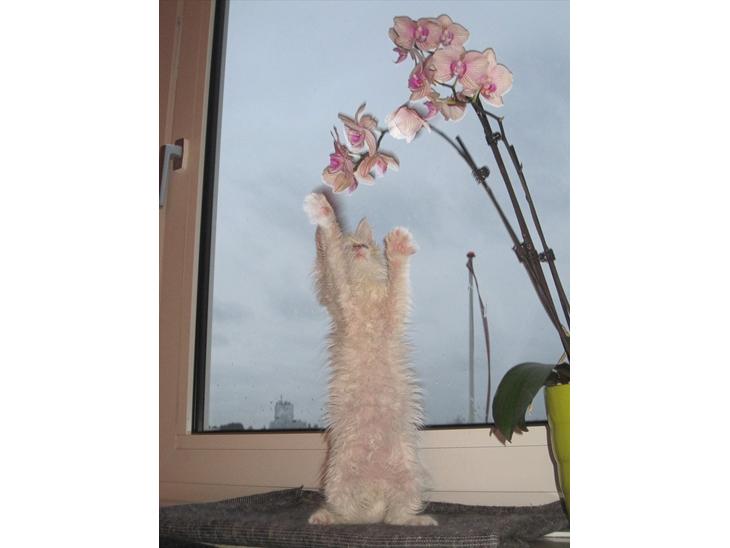 Befinder sig bedst i lav flyvehøjde henover stuegulvet, så en vildbasse som alle andre killinger, men eller en sød, og rolig hankat