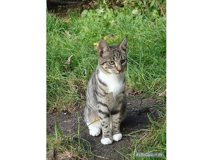 Sød, legesyg og ganske dejlig :b Hun er grå/sort stribet, har lange hår på ørerne og en tynd, lang hale (: På hovedet har hun en Maine Coon's karakteristiske M og så har hun bare det sødeste, ynkelig miav :')