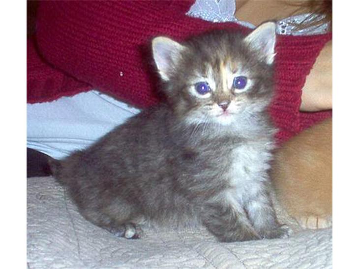 Hun kommer nok til at ligne moren meget, som har den flotteste tortie-markering.