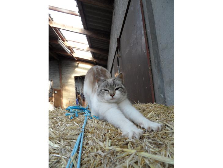 Mittemut er vores lille staldkat. Hun og min hest Freestyle er bare bedste venner! :-) De to elesker at så og nusse hinanden. Min hest elsker at stå og puste ned i mittemuts pels. Desuden elsker mittemut at ligge inde i Freestyles boks og putte i halmen.
