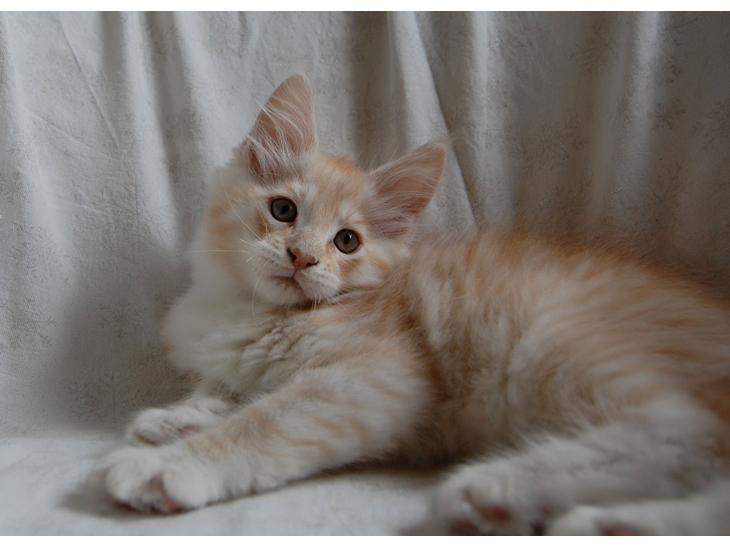 En lille frisk fyr, født den 19 januar 2012.. Han vejer ca 3 -3,5 kg nu og har nogen poter så han næsten kan gå på vandet! Han er en sund og rask hankat med mod på livet, og han skal helt sikker nok vokse sig stor!