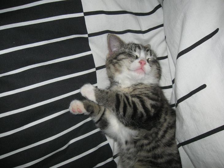 Hvis Simba har fanget en mus, så ligger han den altid i tørkosten, så man ved altid hvem der har været på jagt.