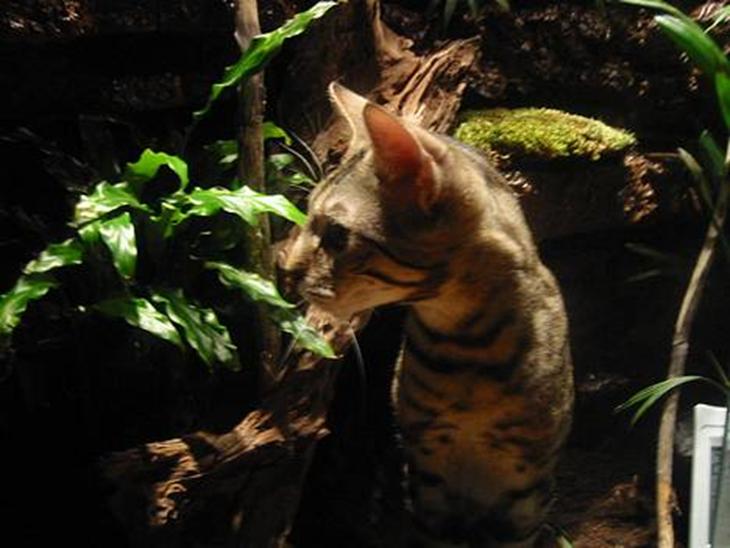 Stille og rolig... Han er kun 4½ måned gammel. Han "snakker" utrolig meget med mig, ikke sådan et rigtig katte mijavvv men en trillende kælen lyd når man snakker til ham *ss* mindre populær når han tror han er en muldvap i potteplanterne eller en ubåd når jeg er i bad :-/ Han er søskende med Bengaler lille mis og Bengaler Ricco som også nyder at være her på katte galleriet :-)