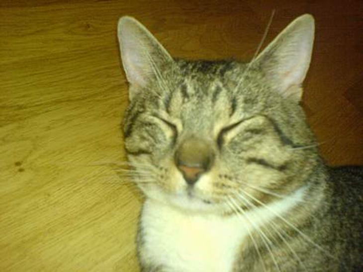 ja jeg er en rat stor han kat så stor at nå jeg går i kattebakke står jeg med hoved ude af kassen men shhhh i må ike sige det til nogle vel...? jeg er gråstribet med lide sort i og med hvide poter,mave og en brun næse. jeg havde rat store øre da jeg var lille men en rat glad kat jeg har en storebror og har lige fået en lillesøster men skal altså lige lære hinde og kende men tror på vi bliver gode venner. jeg elsker og ligge og flyde og putte. jeg ligger altid inde i sengen hos min mor og far og helst på puden. nå men nok om mig håber i kan lide mig...? hej hej