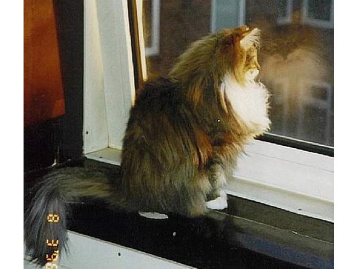Hun har samme far som Yazoo, og det var hende, som jeg faldt for hos opdrætteren. Men da han helst så, at to kom ud sammen, kom hun hertil med Yazoo. Hvilket jeg bestemt ikke har fortrudt. Jeg frygter bare, at de er så tæt knyttet, at de siger farvel nogenlunde samtidig, men det skal man jo ikke tænke på nu. Men hun er begyndt at skrante lidt, er vist blevet lidt vel kræsen på sine gamle dage. Eller også render hun bare om hjørner med mig, fordi hun udmærket ved, at jeg vil gøre alt for hende *S*