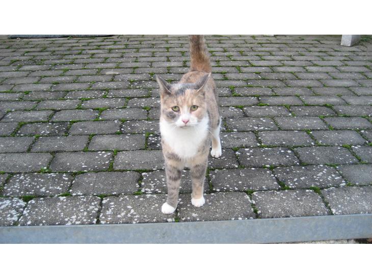 Bacardi har nogle underlige farver. En gullig beige, hvid og grå/sort. Hun er lidt skeløjet. Hun er en meget lille kat, selvom hun er voksen. Men vi regnede heller ikke med at de ville blive så store.