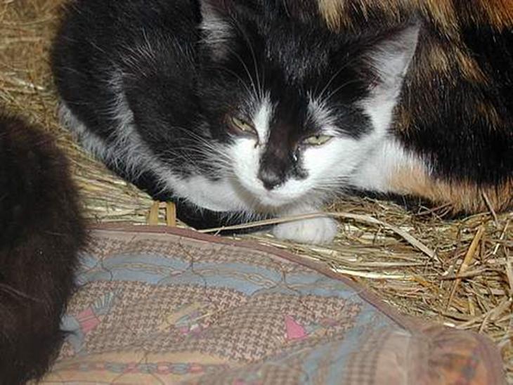 han er en lille fræk miss.. som er hvid og sort... han er ikke så gammel så jeg ved ikke så meget om ham..