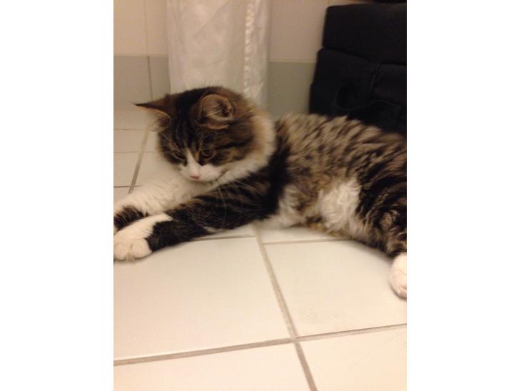 Skønneste 6 måneders killing vi fik hjem i november måned. Han er rigtig nysgerrig og har ingen problemer haft med at falde til. Vi laver hylder, huler og alt muligt kattevenligt til ham, men han vil helst ligge i skødet på os eller på spisebordet, når han skal sove.