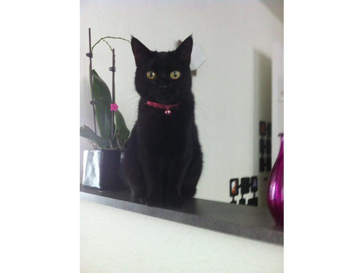 Hun er så dejlig og en rigtig krammebamse! Vi hentede hende på brande internat og vi faldt for hende med det samme. I starten da vi havde købt hende var hun meget sky. Det er hun dog slet ikke så meget mere, udover for fremmede. Men det er der jo heller ikke noget at sige til. Hun endte på et internat da hun var blevet efterladt i en papkasse med sine killinger, midt ude på vejen.. Sørgeligt. :/ men godt vi fandt hende! Hun kan også være den største nussegøj men miaver når man løfter hende, det kan hun ikke lide. Hun er en god stille og rolig kat! :) og hun har virkelig de flotteste grønne øjne!