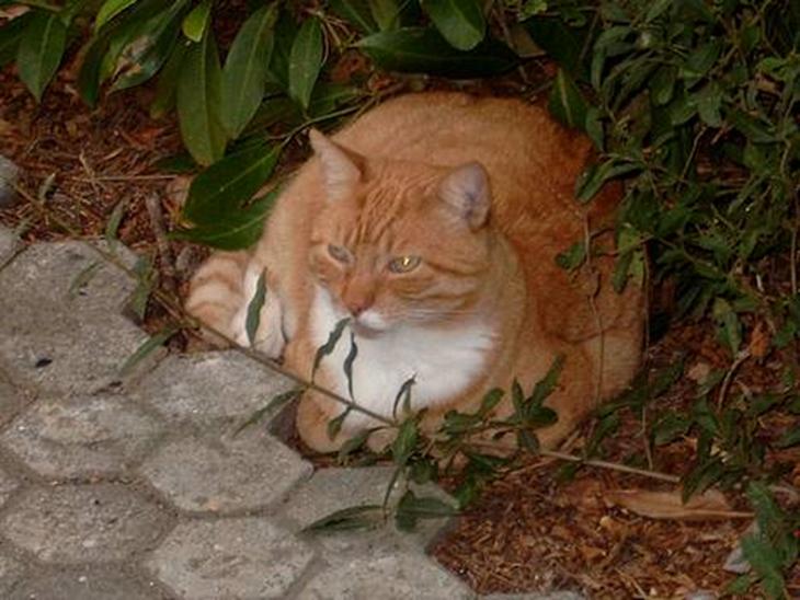 Han minder meget om vores Misse, som også er rød/hvid og ufattelig doven! *Gg*
