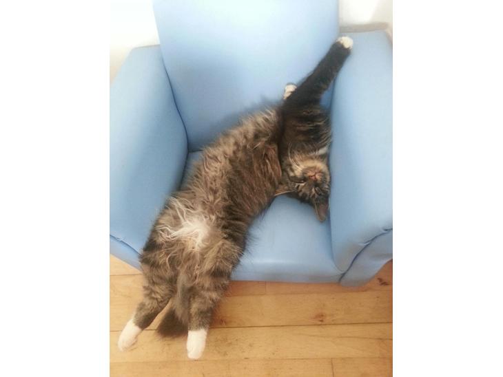 meget glad og kælen, og snakker meget. kan godt lide at lege fanger.